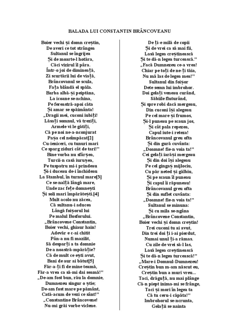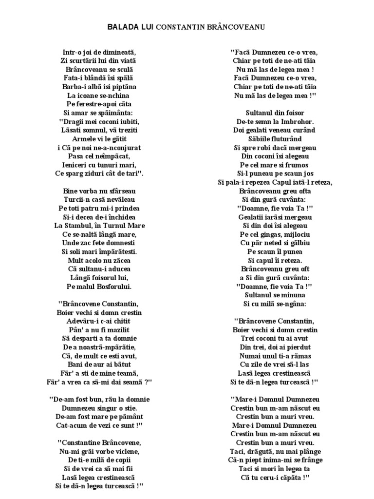 Balada Lui Constantin Brancoveanu Crestinortodox Ro
