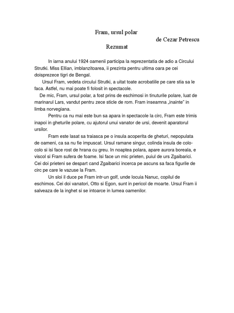 Rezumatul Cartii Fram Ursul Polar De Cezar Petrescu Ellaintaracopiilor S Blog