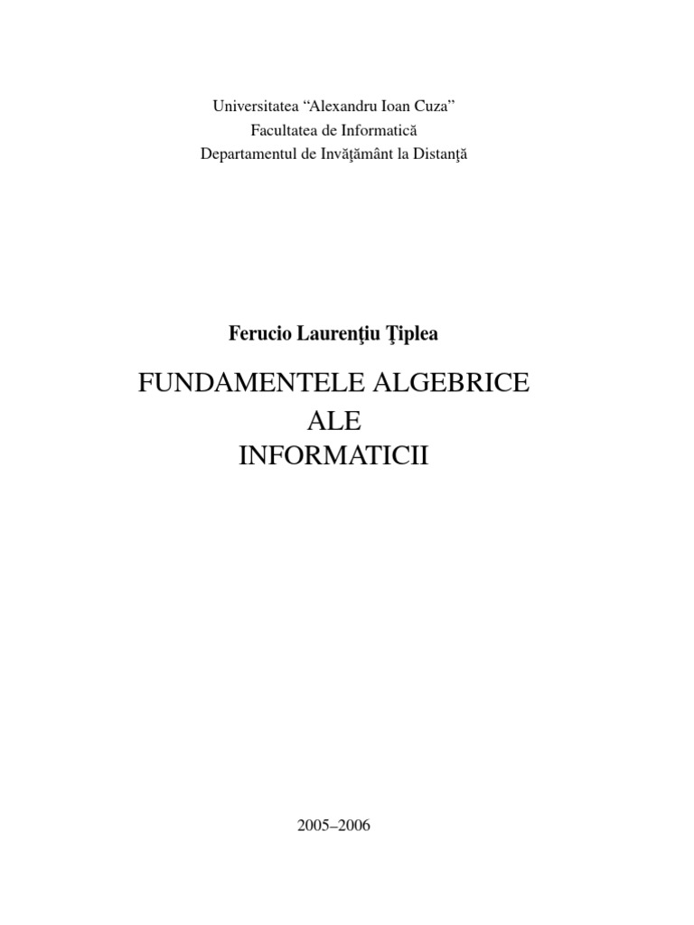 Fundamentele Algebrice Ale Informaticii Ferucio Laurentiu Tiplea
