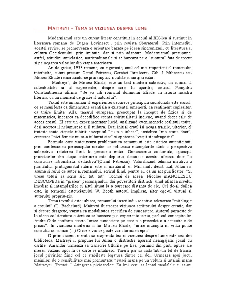 Maitreyi Tema Si Viziunea Despre Lume Comentariu Bac