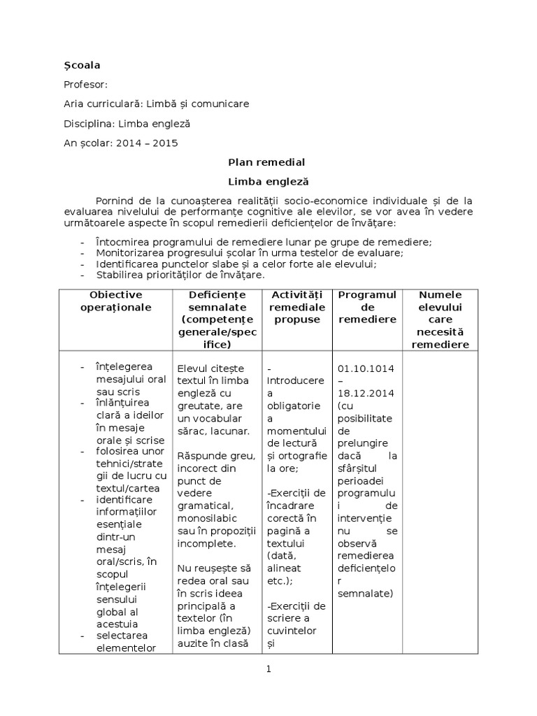 Plan De Masuri Remediale Cls 3